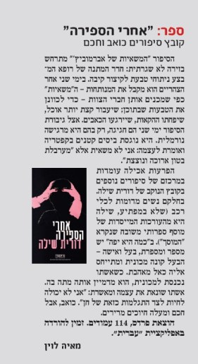 […] "הפרעות אכילה עומדות במרכז סיפורים נוספים בקובץ הנוקב של דורית שילה […] כואב, אבל חכם ומעלה חיוכים מרירים." מאיה לוין, לאישה […]